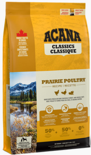 Η ACANA Prairie Poultry ξεχειλίζει από θρεπτική ζωική πρωτεΐνη και χαρακτηρίζεται από ελευθέρας βοσκής κοτόπουλο και γαλοπούλα, αλλά και ολόκληρα αυγά από φωλιές.