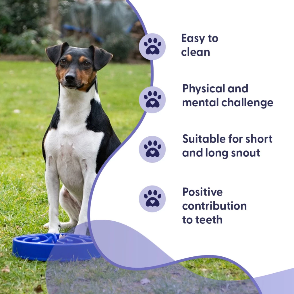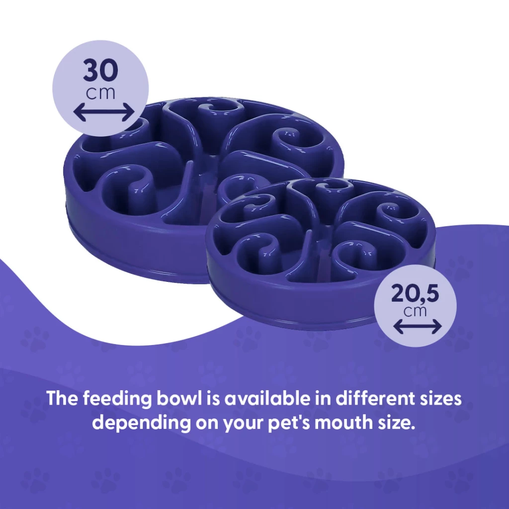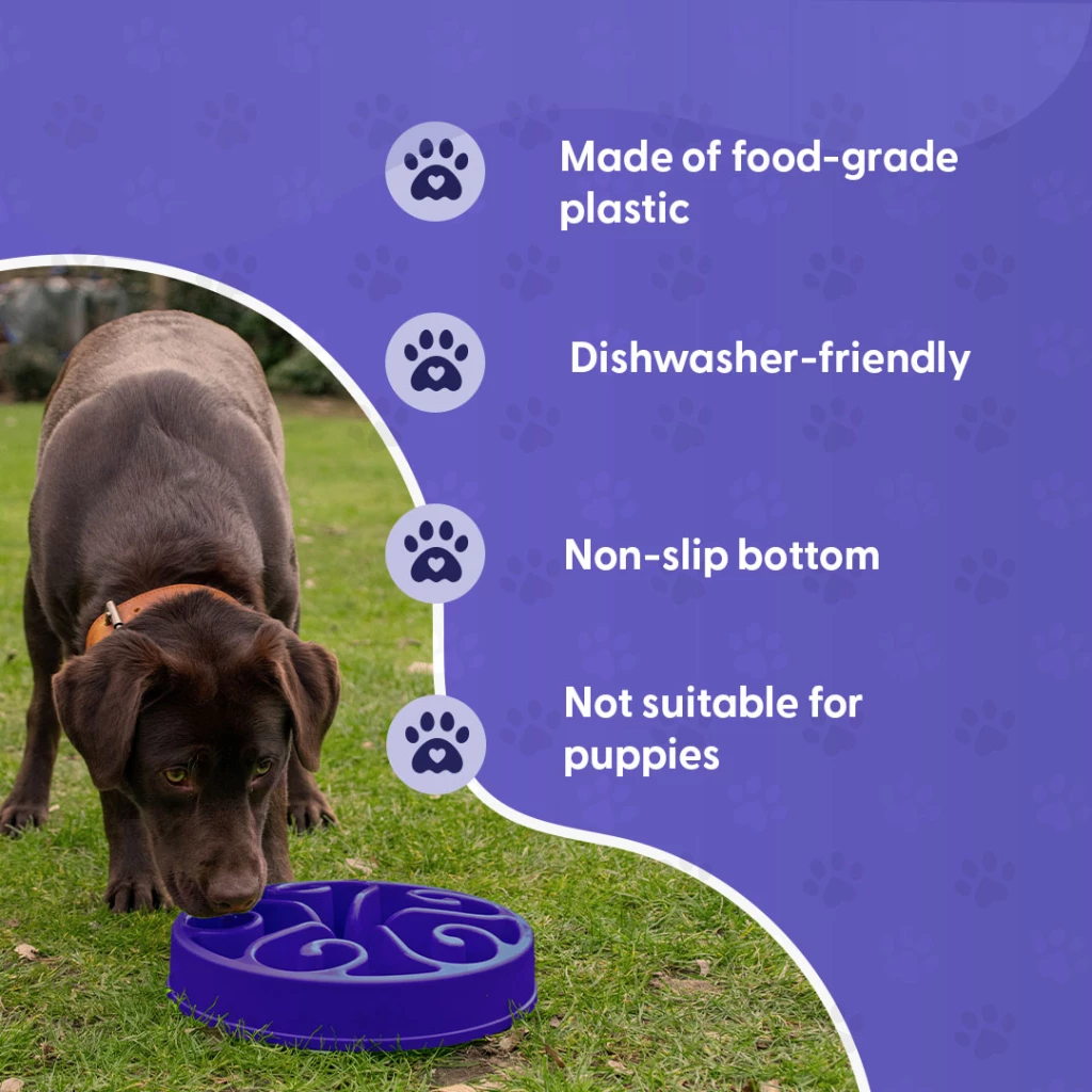 With the Eat Slow Live Longer Original slow feeder, gobbling is a thing of the past! This food bowl with a spiral pattern makes it harder for a dog or cat to reach the dry food, so the pet takes smaller bites, eats slower and chews better. The slow feeder has non-slip feet on the bottom and is dishwasher-safe.