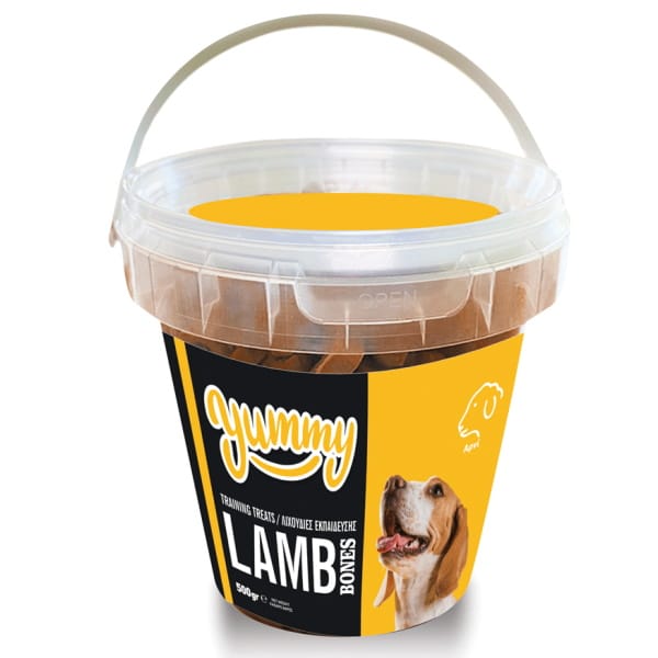Λιχουδιες επιβράβευσης σκύλου σε μικρές μπουκίτσες σε σχήμα κόκκαλου.