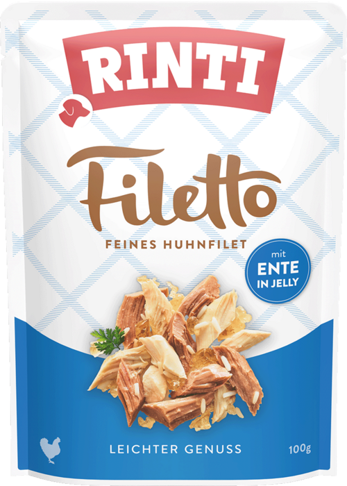 Light pieces of chicken fillet in delicate jelly, garnished with pieces of duck, prepared in the Rinti gentle process. This meat meal is not only easily digestible, it also offers the dog a special taste experience.