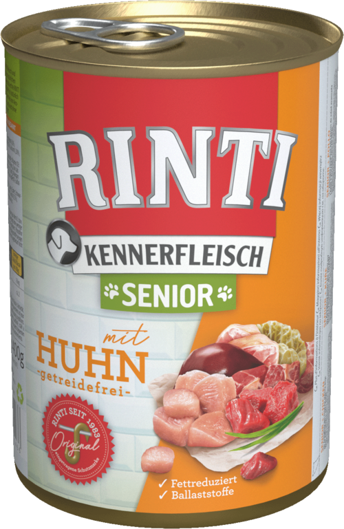 For older dogs, with reduced energy content, less protein, as well as reduced phosphorus and sodium content. High meat content: with 66% meat and offal, Rinti Kennerfleisch is rich in natural pieces of meat – and the pieces characterize the real Rinti Kenner meat. With Omega 3 fatty acids: these polyunsaturated fatty acids are used to support the defenses and cell protection. Lein oil is rich in Omega 3. With beet fibers: rich in fiber, which has a regulating effect on digestion.