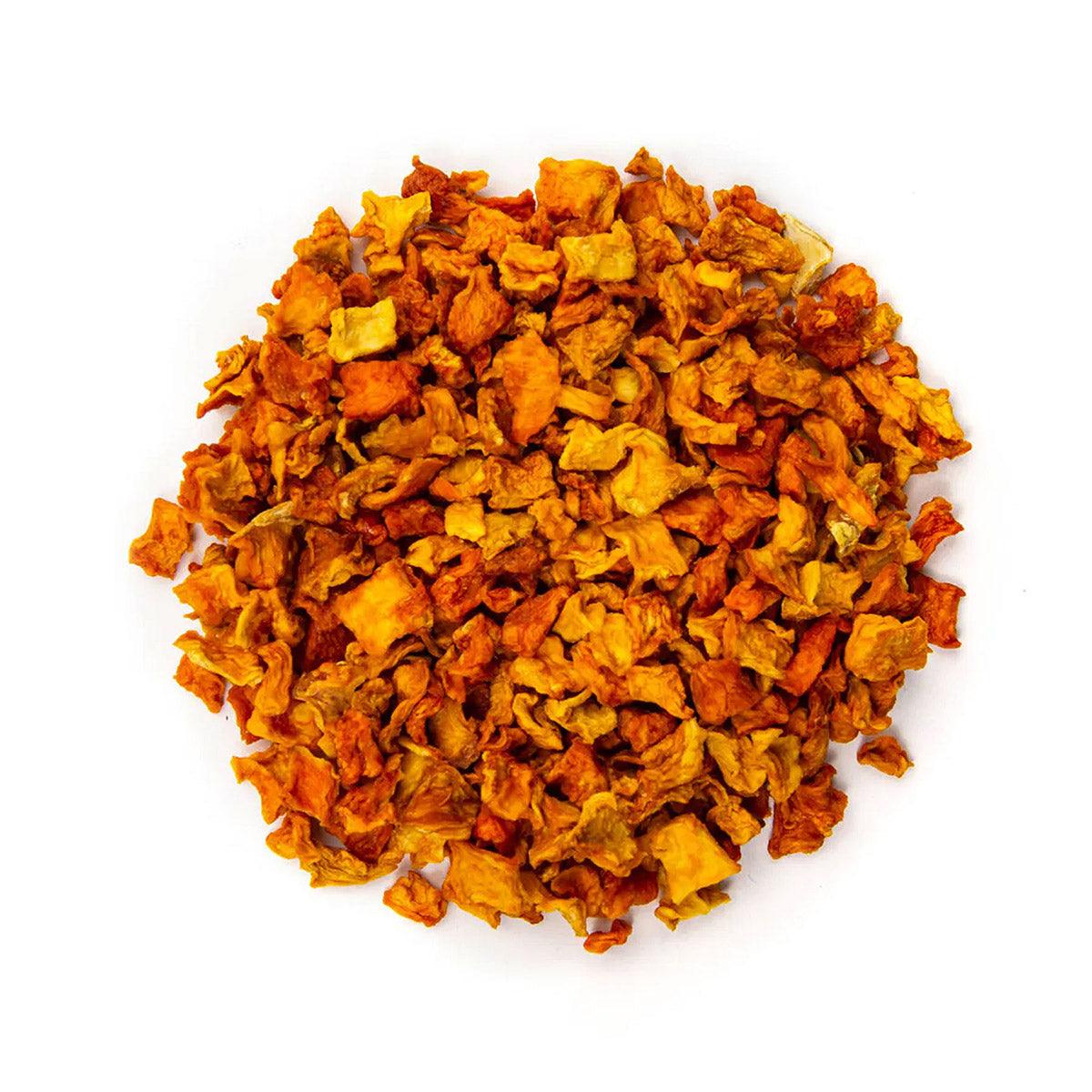 SANADOG vegetable flakes are particularly long-lasting because we remove the moisture and gently dry them at low temperatures. Through this careful processing, all valuable vitamins and aromatic substances are preserved, so your furry friend receives all the important nutrients from our high-quality food supplement.