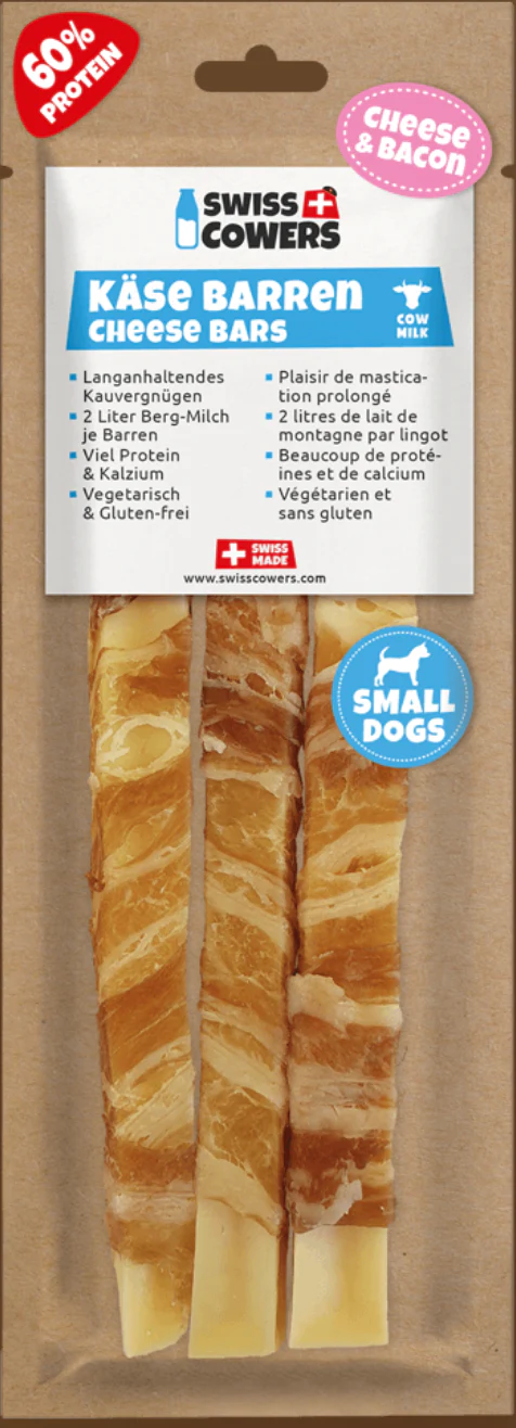 A long lasting cheese chew made from 100% Swiss milk, wrapped with tasty bacon! High proportions of natural proteins and minerals support muscle development and helps to strengthen teeth and gums. Rich in natural calcium but completely free of lactose and gluten, these treats are 100% natural and suitable for all dogs over 6 months of age